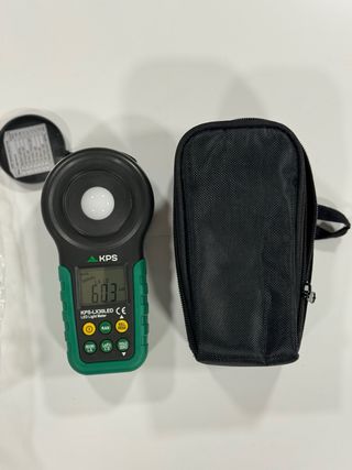 Luxómetro digital KPS LX30LED para medir la intensidad de la luz. - Pantalla LCD. - Función de retención de datos (HOLD). - Medición de valor pico (PEAK). - Incluye funda protectora.