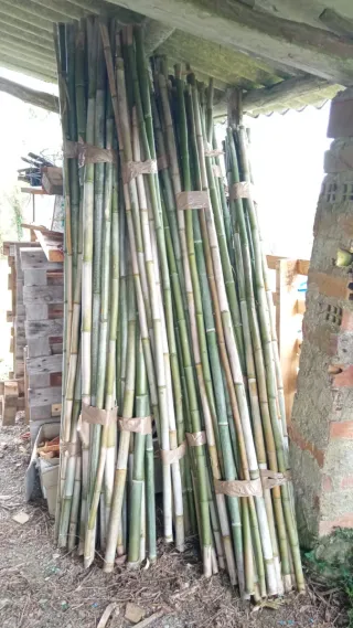 Lote de cañas de bambú, ideales para proyectos de jardinería, construcción o decoración. - Cañas de bambú de 2 metros de largo y 3 cm de grosor aproximadamente. - Paquetes de 10 piezas a 20 euros el paquete