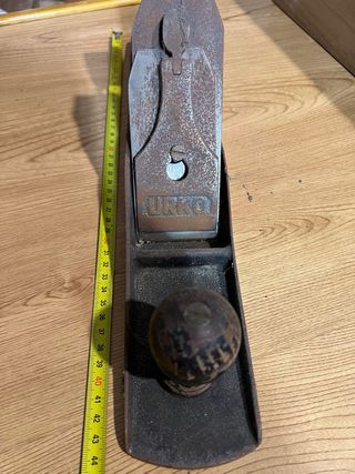 Cepillo de carpintero de la marca Urko. Herramienta clásica para trabajos en madera. - Cuerpo metálico. - Empuñadura de madera.