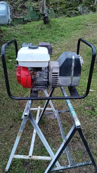 Generador Honda con motor GX160. Generador honda, motor honda 5'5cv potencia 3000w En muy buen estado, siempre se ha utilizado dentro de una caseta cubierta. Utilizado siempre para dar servicio a radiales, televisión, un torno... Nada excesivo. - Estructura metálica de soporte. - Carcasa protectora del motor.