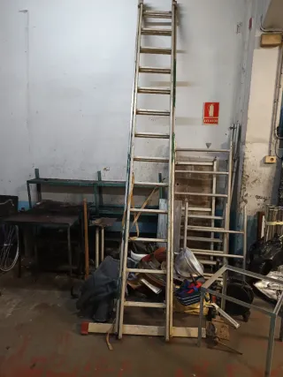 Escalera de aluminio de dos tramos. - Fabricada en aluminio. - Diseño de dos tramos para mayor alcance.