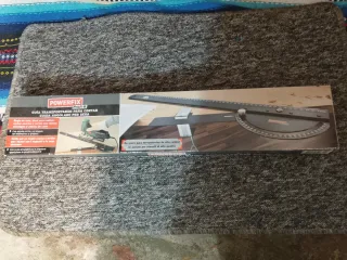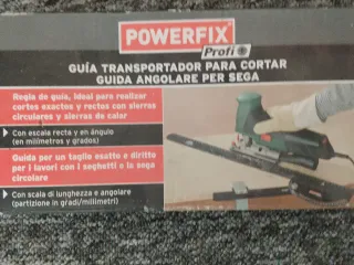Guía transportadora para cortes angulares con sierra. - Marca: POWERFIX Profi. - Material: Acero para herramientas de alta calidad. - Permite realizar cortes rectos y en ángulo. - Escala de medición en milímetros y grados.