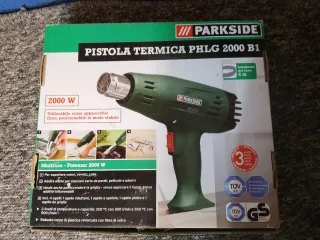 Pistola de calor Parkside PHLG 2000 B1 con 2000W de potencia. Es utilizable como aparato fijo y posicionable de forma estable. - Ideal para retirar pintura, barnices y colas. - También sirve para despegar papel pintado, películas o adhesivos. - Apta para encender barbacoas sin usar fuego ni aditivos inflamables. - Incluye 4 boquillas: reductora, espátula, plana y para parrilla. - Dos niveles de temperatura y caudal de aire: 350°C/300 l/min y 550°C/500 l/min. - Carcasa robusta de plástico reforzado con fibra de vidrio. - Longitud del cable: 4 m.
