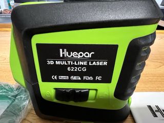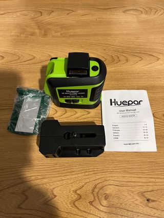 Nivel láser 3D Huepar 622CG en color verde y negro. Fue un regalo de Navidad y ya tengo uno. - Incluye manual de usuario. - Incluye soporte. - Incluye funda.