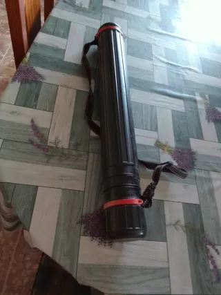 Tubo extensible para transportar planos, dibujos o pósters. Cuenta con una correa para facilitar su transporte. - Material: Plástico resistente. - Color: Negro. - Cierre de rosca. - Correa ajustable. Solo venta en persona
