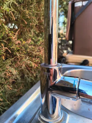Fregadero de cocina de dos senos con grifo de la marca Grohe. El grifo está en excelente estado, casi nuevo. - Dos cubetas amplias. - Grifo monomando Grohe. - Acabado cromado brillante.