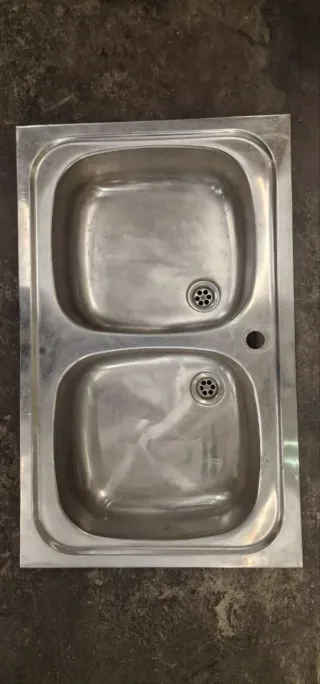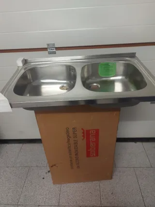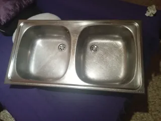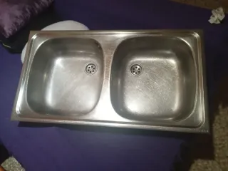 Fregadero de acero inoxidable con dos senos.largo 80cn ancho 50 cn lleva piezas Nuevo - Material: Acero inoxidable. - Diseño de doble seno.