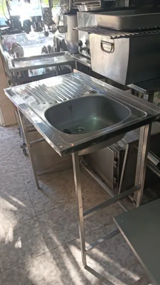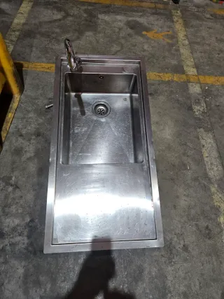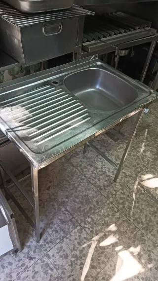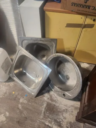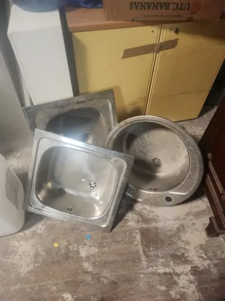 Se venden varios fregaderos de acero inoxidable, ideales para cocinas o talleres. - Material: Acero inoxidable. - Diseño: Con cubeta y escurridor. - Estado: Usados, con marcas de uso.