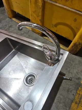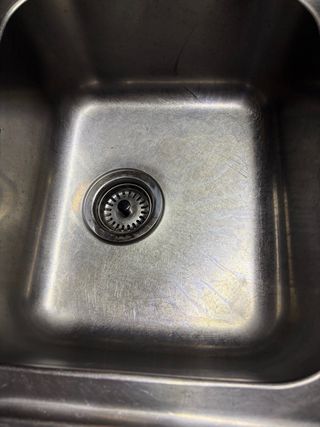 Fregadero de acero inoxidable en buen estado. - Material: Acero inoxidable. - Diseño moderno y funcional.