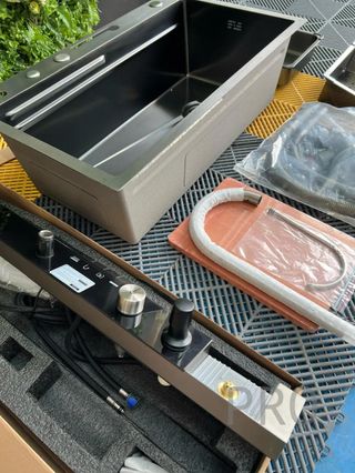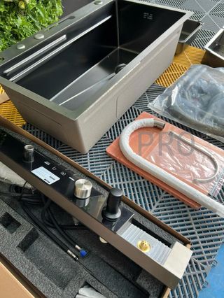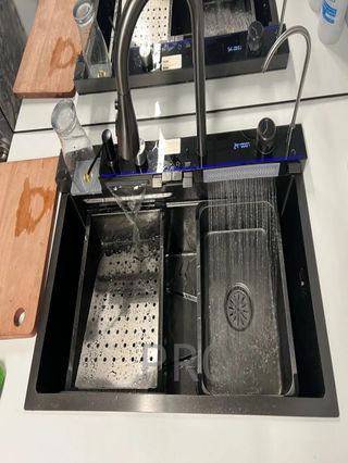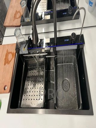 Este fregadero múltiple combina diseño moderno y funcionalidad avanzada. Fabricado en acero inoxidable, incluye pantalla digital, múltiples salidas de agua y accesorios prácticos. Ideal para quienes buscan tecnología, estilo y eficiencia en la cocina del día a día.