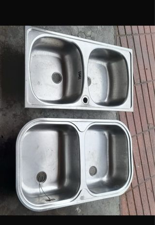 Se venden dos fregaderos de cocina de acero inoxidable. Una ovalada y otra cuadrada las dos 50 por separado 30 cada una. medidas: 0,80 x 0,43 cuadrada medidas: 0,83 x 0,48 ovalada - Material: Acero inoxidable. - Diseño: Doble seno. - Acabado: Brillante