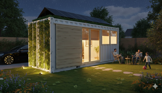 Refugio 20 pies (~15-20 m2) con: 1 habitacion acogedora con cama de matrimonio, sala multifuncional, mini cocina (encimera + fregadero), baño completo (ducha, WC, lavabo) y **paneles solares + batería acumulador de serie** para autonomía energética. Aislamiento pasivo con arcilla natural, techo panal hidrófugo con cámara acústica 2 mm, ventanas grandes y acabados madera clara. Reversible, portátil y sostenible. Perfecto para fin de semana, parcela o jardín. Personalízalo con Pozo Canadiense o ampliaciones. ¡Tu oasis de escapada, con energía solar incluida! ¿Quieres saber más? Escríbenos presupuesto sin compromiso.