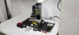 Fresadora Proxxon MF 70. - Modelo MF 70. - Marca Proxxon. (Fresadora de precisión,Microfresadora,Herramienta CNC,Bricolaje,Carpintería,Modelismo,Mesa de coordenadas,Motor silencioso,Tallado en madera,Trabajo en aluminio,Taller pequeño,Portátil y compacta,Ajuste fino,Accesorios incluidos)