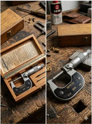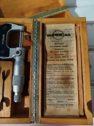 ATENCION: están en Cunit,Tarragona, se pueden enviar. 2 micrómetros de precisión de la prestigiosa marca española INPRESA (Burgos), un referente en metrología industrial. Rango de medición de 0 a 25 mm. Es una herramienta de alta calidad, muy superior a los modelos actuales de plástico o metal ligero. Ideal para trabajos de torno, fresadora, rectificados o mecánica de motor que requieran máxima exactitud. Sin óxido y con movimiento de tambor muy suave. Escala de graduaciones oblicuas para una lectura más clara y precisa de las centésimas .Conserva el papel original de instrucciones.precio de los dos.Uno de ellos, mas usado.