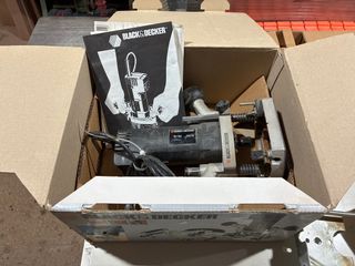 Fresadora Black & Decker KW850E en su maletín original. 1100W. 230V - 50Hz. Bloqueo del eje para un fácil cambio de las fresas. Velocidad variable para un mayor control y evitar quemar el material a fresar. Botón de seguridad. - Incluye fresadora. - Maletín de transporte. - Fresas y accesorios originales. - Manual de instrucciones. Solo se ha usado 2 veces. Prácticamente nueva.