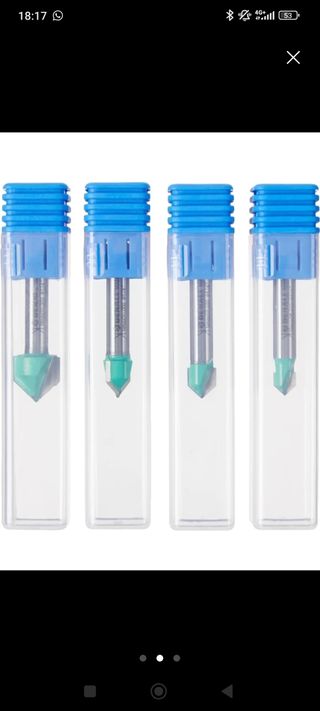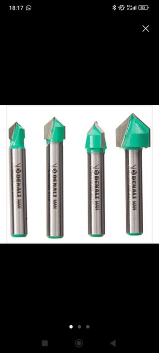 Juego de brocas para fresadora y taladro ranuradas en V, con diámetros de corte de 1/4", 5/16", 3/8" (63mm, 80mm, 95mm, 127mm). El diámetro del vástago universal de 1/4" (63mm) garantiza un ajuste seguro. Para usarlas en maderas duras y blandas, se pueden usar con materiales compuestos y contrachapado. Están nuevas, sin uso. Dispongo de varias unidades, hago precio por la compra de varias unidades.