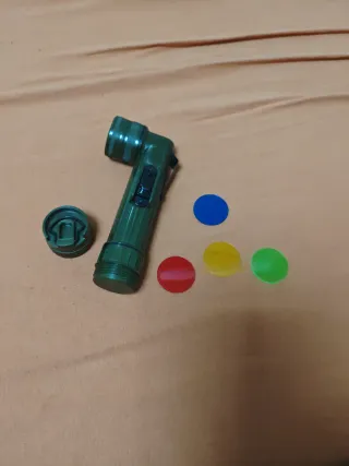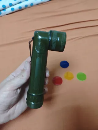 Linterna de codo de color verde militar, modelo TL 132. Incluye varios filtros de colores. - Linterna de codo - Color verde militar - Incluye filtros de colores (rojo, azul, amarillo, verde)