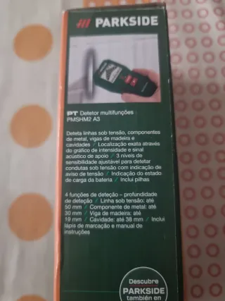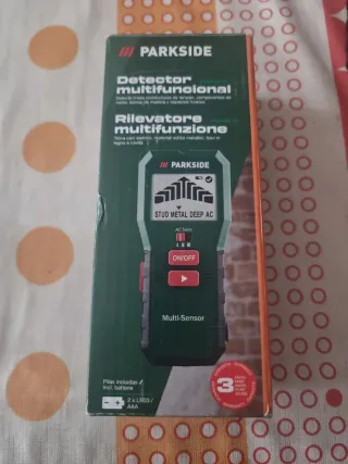 Detector multifuncional Parkside PMSHM2 AS. - Detecta líneas conductoras de tensión, componentes de metal, barras de madera y espacios huecos. - Encuentra cables eléctricos, materiales metálicos y vigas de madera. - Incluye 2 pilas LR03/AAA. - Garantía de 3 años.