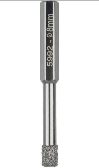 wolfcraft Broca para taladrado en seco recubierta de diamante, vástago hexagonal, Ø 8 mm I 5992000 I Para taladrar en seco azulejos, gres fino y cerámica.