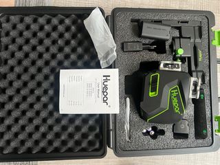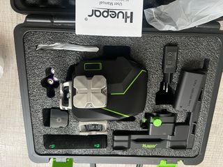 Nivel láser Huepar S03CG con tecnología 3x360 grados. Incluye estuche para transporte. - Batería de litio recargable. - Cargador de pared. - Manual de usuario en varios idiomas.