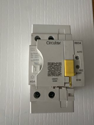 Interruptor diferencial auto rearmable CIRCUTOR REC4. NUEVO A ESTRENAR. 2 Polos / 40 Amperios/ Sensibilidad 30 mA. Modelo :CIRCUTOR P26A21. • Protección diferencial: Detecta fugas de corriente al comparar la corriente de entrada y salida. • Rearme automático: En caso de disparo, el dispositivo restablece el suministro eléctrico de forma automática a los pocos minutos, siempre que la fuga haya sido eliminada. Entrega en mano