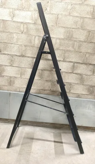Escalera de pintor plegable, ideal para trabajos en casa o en el taller. Es fácil de desplegar y guardar. Altura del suelo a la plataforma: 98cm Altura total: 157cm - Fabricada en aluminio. - Plataforma superior. - Peldaños antideslizantes.