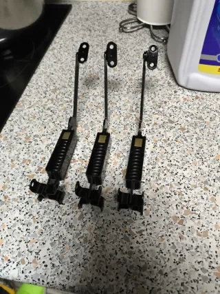Set de tres bisagras para tapa con soporte de resorte. - Color negro. - Material metálico.