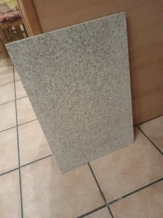 40x60. Pieza de mármol con un acabado granulado. - Material: Mármol. - Color: Gris claro con motas oscuras.