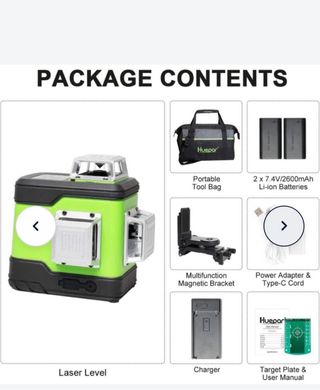 Nivel láser Huepar 503 con líneas verdes. - Incluye bolsa de transporte. - Viene con dos baterías recargables. - Incluye cargador y cable USB. - Incluye soporte de montaje. - Incluye manual de usuario. (funciona todo perfecto poco uso)