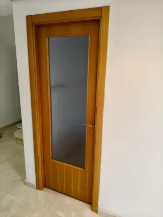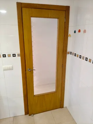 Puertas de paso para interiores, fabricadas en madera acabado pino, tres puntos anclaje. Tapajuntas de 7cm. Manetas y galce incluidas. No premarcos. Altura hoja puertas 204cm. - 1x puerta cocina 72,5cm izquierda. Hoja vidrio traslucido integrada. Galce 10cm. - 3x puerta paso 72,5cm izquierda. Galce 9cm. - 1x puerta paso 72,5cm derecha. Galce 9cm - 1x puerta paso 62,5cm izquierda. Galce 10cm. Con minicondena. - 1x puerta paso 62,5cm derecha. Galce 10cm. Con minicondena. El precio es por unidad.