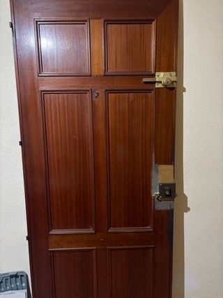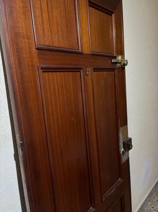 Puerta de madera de estilo clásico, con un ancho de 82 cm. Presenta un diseño de paneles rectangulares. 70 con cerraduras 30 sin cerraduras Las cerradueas son nuevas una ya me costo 55 euros NO NEGOCIABLE - Material: Madera - Ancho: 82 cm