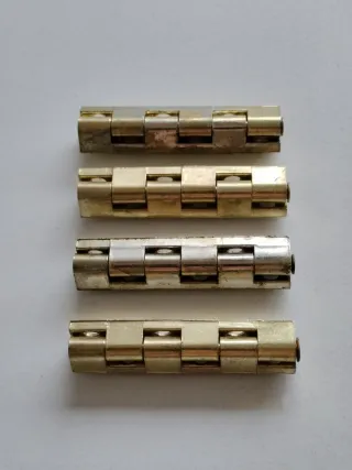 Conjunto de cuatro bisagras de latón. Herraje articulado para muebles, carpintería ligera, puertas o paneles Material: Latón.