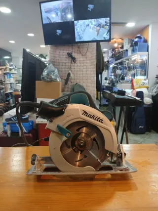Sierra circular de la marca Makita. Herramienta eléctrica para cortes precisos. - Mango ergonómico para un mejor agarre. - Base ajustable para cortes en ángulo.