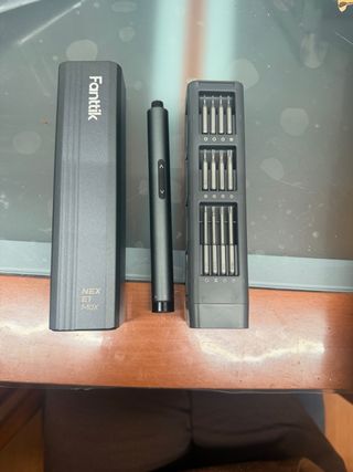 Destornillador eléctrico Fanttik NEX E1 MDX con estuche y puntas. - Diseño compacto y ergonómico. - Incluye estuche de almacenamiento. - Variedad de puntas para diferentes usos.