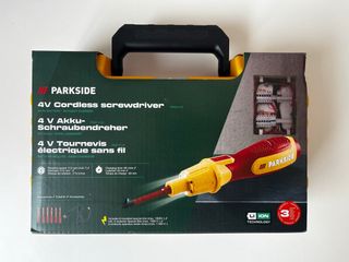 ÚLTIMA UNIDAD! A ESTRENAR. NO NEGOCIABLE. Destornillador eléctrico Parkside de 4V, ideal para trabajos de electricista. Se incluye la batería. - Velocidad de rotación: 215 rpm. - Tiempo de carga: 60 minutos. - Incluye 6 puntas especiales aisladas (máx. 1000V). - Tecnología Li-Ion.