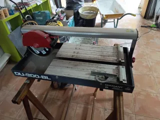 Cortadora de azulejos DU-200-BL de la marca Diamant. - Disco de corte DEXTER. - Base de trabajo con guías. - Soporte plegable de madera.