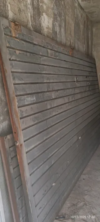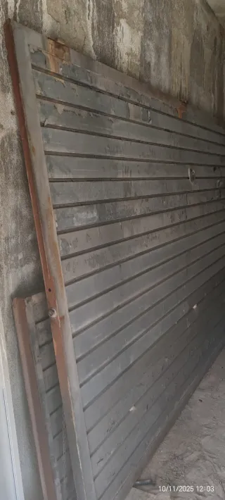 Puerta metálica de corredera o basculante. Ideal para garajes o accesos. - Fabricada en metal. - Diseño de lamas horizontales.se venden dos lamas que estaban en una puerta basculante,,tramo grande 3,60 ancho x 2 y tramo pequeño 3,60 x1 metro estaba montada en basculante pero se puede usar para corredera o abatible ,tramo grande 330 euros,,tramo pequeño 240,,las dos juntas 500,,están en muy buen estado solo hay k pintarlas,,también dispongo del motor basculante por 200 euros!!