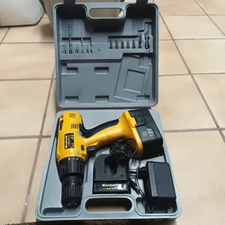 Taladro atornillador Einhell Bavaria BAS 18V con su maletín y accesorios. - Incluye taladro, cargador y caja de puntas y brocas. - Batería de 18V. Se vende a ese precio por qué la batería dura poco, por lo demás todo correcto.