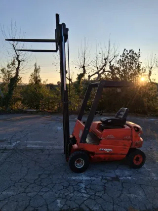 Carretilla elevadora con capacidad de carga de 1200 kg. Toro elevador linde - Color naranja. - Ruedas en buen estado.