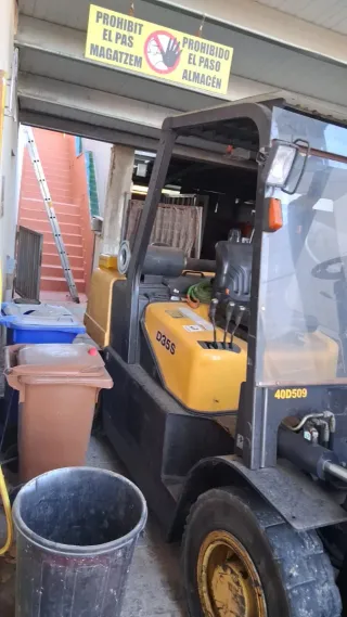 Carretilla elevadora marca Samsung con capacidad de 6500 kg. Ideal para cargas pesadas. Toro elevador - Color amarillo y negro. - Neumáticos en buen estado. - Mástil de elevación.