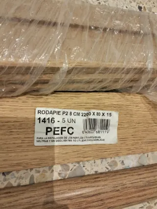 Lote de 4 rodapiés de madera de roble, listos para instalar. Y una junta de tránsito - Material: Madera de roble. - Certificación PEFC.