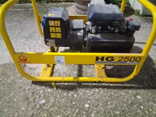 Generador eléctrico PRATAC HG 2500 Praxio. - Estructura metálica amarilla. - Panel de control con enchufes. - Indicador de nivel sonoro de 96 dB.