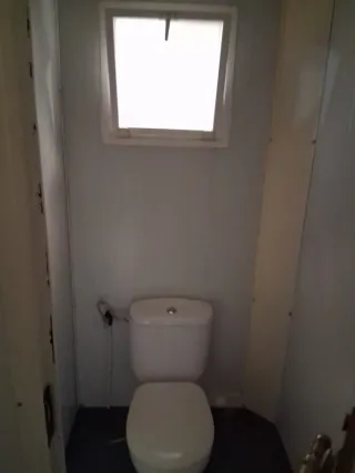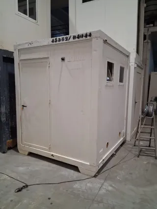 Caseta de obra prefabricada, ideal para servicios o almacenamiento. Caseta wc - Estructura metálica. - Puerta de acceso. - Ventanas. - Número de identificación: 438627/04044.