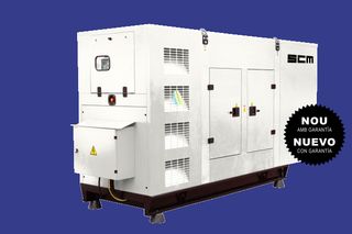 GENERADOR ELÉCTRICO / GRUPO ELECTRÓGENO 110 KVA (INSONORIZADO) NUEVO DE FÁBRICA Modelo: SCM KB-110 Potencia Prime: 100 kVA - 80 kW Potencia Standby: 110 kVA - 88 kW Velocidad: 1500 r.pm. Voltaje: 400/230 VAC Factor de potencia: 0,8 Cos Phi Motor: Baudouin Potencia: 90 kW Modelo: 4M10G110/5 Alternador: Nekra Dimensiones (tipo abierto): Largo 2150 mm, Ancho 1100 mm, Alto 1150 mm Peso (tipo abierto): 1221 kg Dimensiones (tipo cubierto insonorizado): Largo 2910 mm, Ancho 1160 mm, Alto 1720 mm Peso (tipo cubierto insonorizado): 1592 kg Capacidad del tanque de combustible: 174 lt * Precio sin IVA