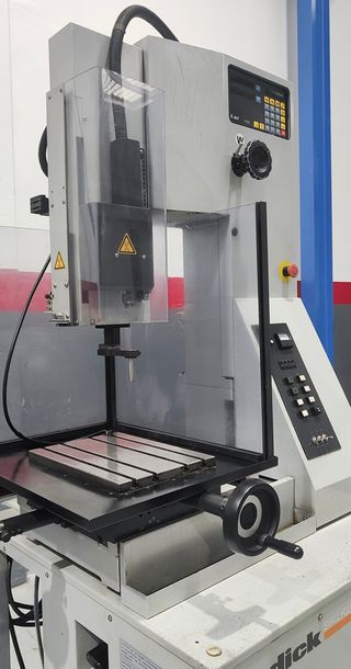 La Sodick K1C es una máquina de electroerosión por agujeros (EDM Drilling) de alta precisión con control X-act SDS2, ideal para piezas pequeñas y medianas. Recorridos X/Y/Z de 200/300/300 mm y eje C de 250° permiten perforaciones precisas en piezas de hasta 250x350x300 mm y 100 kg. Con generador MOSFET, corriente de 30 A y potencia nominal de 3,3 kVA, esta máquina compacta y ligera (550 kg) garantiza fiabilidad, eficiencia y exactitud en talleres de alto nivel.