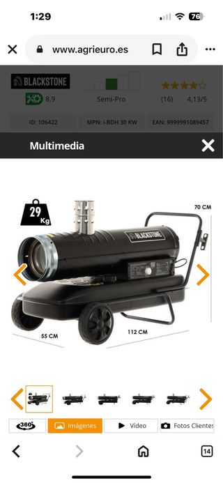 Generador de aire caliente diésel de la marca Blackstone. Diseñado para ofrecer calor eficiente en espacios amplios. Se puedo entregar en Madrid BlackStone i-BDH 30 KW - Generador de aire caliente diésel - De combustión indirecta - 30 kW Para mas información ir a la página oficial de Agrieuro.com dinde henos comprado este maravillosa maquina Usada solamente unos 2 semanas para una obra como nueva y muy fiable puedo funcionar con gasoil rosa mas barato aun es lo que he utilizado.