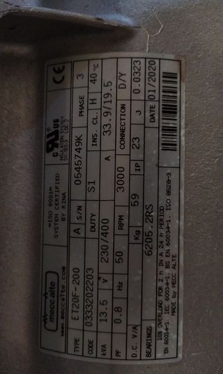 Grupo electrógeno generador de 88 kvas. 141 horas de USO. Tiene tan pocas horas porque estaba como generador de emergencia - Motor diésel 6 cilindros en Linea IVECO AIFO versión turbo (industrial / grupo electrógeno) Nº de motor: 661675 - Generador eléctrico/ alternador Mecc Alte S.p.A. (Italia) • Tipo / Modelo: SMART 34-SB/4 • Año de fabricación: 1992 • Fases: 3 (trifásico) • Frecuencia: 50 Hz • Velocidad nominal: 1500 rpm • Potencia aparente: 88 kVA • Tensión: 220 / 380 V • Corriente: • 231,5 A a 220 V • 133,7 A a 380 V • Rodamientos: 6311 2RS • Normas: IEC / CEI / VDE • Origen: Made in Italy