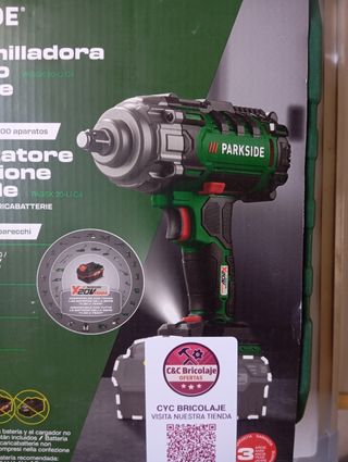 🔴 PRODUCTO CON GARANTÍA ✅LLave de impacto Parkside de 20V, sin batería ni cargador. Es un modelo nuevo, en su caja original. - Modelo: PASSK 20-Li C4 - Par de giro preselección: 100/150/200/300/400 Nm - Velocidad de giro en vacío: 0-2300 rpm - Número de percusiones: 0-3000 ipm Tags: Herramientas, bricolaje,taller,oferta, parkside,Lidl, promoción,hilti,metabo,Dewalt, manualidades,modelismo,hogar,manitas, profesional,Barça,barco,verano, parcela, jardín, jardinería, ferretería,cable, alargador, electricidad, depuradora, piscina, generador,toldo,lona,coche,moto,camión,bellota,prolongador,regleta, reforma, mecánica,electrónica, con