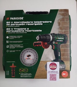 🔴 PRODUCTO GARANTIZADO ✅Taladro atornillador percutor recargable Parkside con batería y cargador incluidos. - Modelo: 20 V. - Incluye maletín. - Percutor para taladros en hormigón. Tags: Herramientas, bricolaje,taller,oferta, parkside,Lidl, promoción,hilti,metabo,Dewalt, manualidades,modelismo,hogar,manitas, profesional,Barça,barco,verano, parcela, jardín, jardinería, ferretería,cable, alargador, electricidad, depuradora, piscina, generador,toldo,lona,coche,moto,camión,bellota,prolongador,regleta, reforma, mecánica,electrónica, construcción,obra, taladro, atornillador,taladradora, ferretería,albañil,pintor,cycbrico,terraza, elec