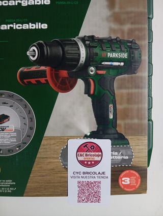 🔴 PRODUCTO GARANTIZADO ✅Taladro percutor recargable Parkside 20V cargador y batería incluidos. - Velocidad de giro: 0-440 / 0-1650 rpm. - Número de percusiones: 26400 ipm. - Diámetro de perforación máx.: 35 mm en madera, 13 mm en metal y mampostería. - Par máx. de giro: 45 Nm. - Incluye accesorios. Tags: Herramientas, bricolaje,taller,oferta, parkside,Lidl, promoción,hilti,metabo,Dewalt, manualidades,modelismo,hogar,manitas, profesional,Barça,barco,verano, parcela, jardín, jardinería, ferretería,cable, alargador, electricidad, depuradora, piscina, generador,toldo,lona,coche,moto,camión,bellota,prolongador,regleta, reforma, mecán